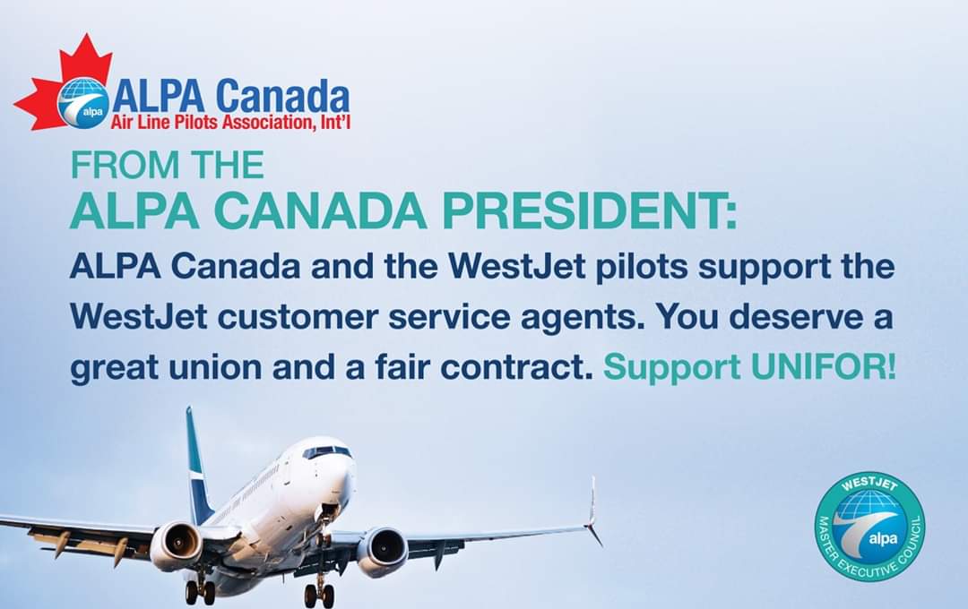 Other workers at WestJet are seeing the advantage of having a voice in the workplace as the company and the industry go through this difficult time, including ALPA representing the pilots, who also send a simple message to you: “ALPA Canada and WestJet pilots support WestJet airports and call centre employees in joining Unifor Canada. You deserve a great union and a fair contract.”